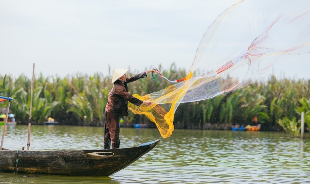 Experience a traditional round bamboo basket boat ride and crab fishing (1 hour)